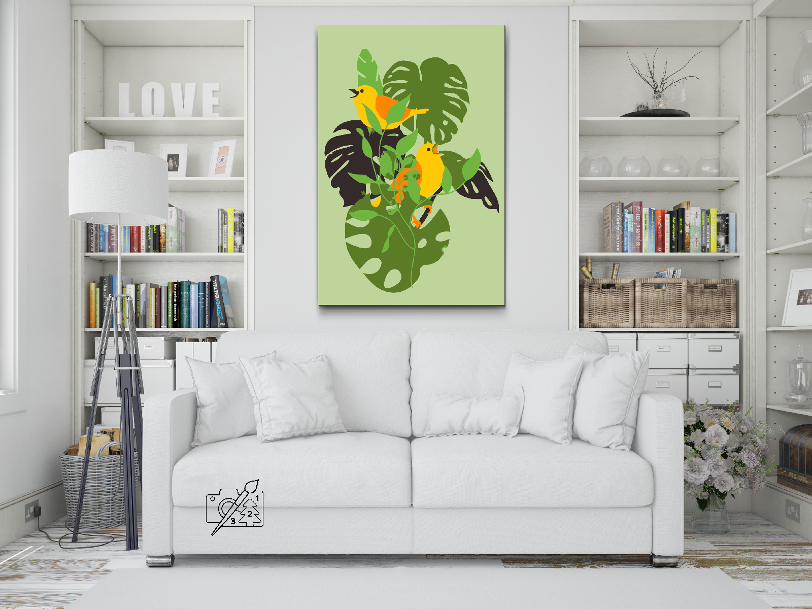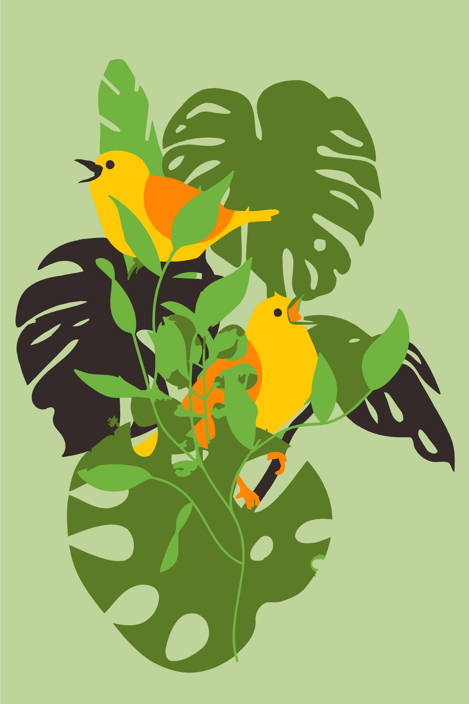 Paint by number - Fugle på en Monstera