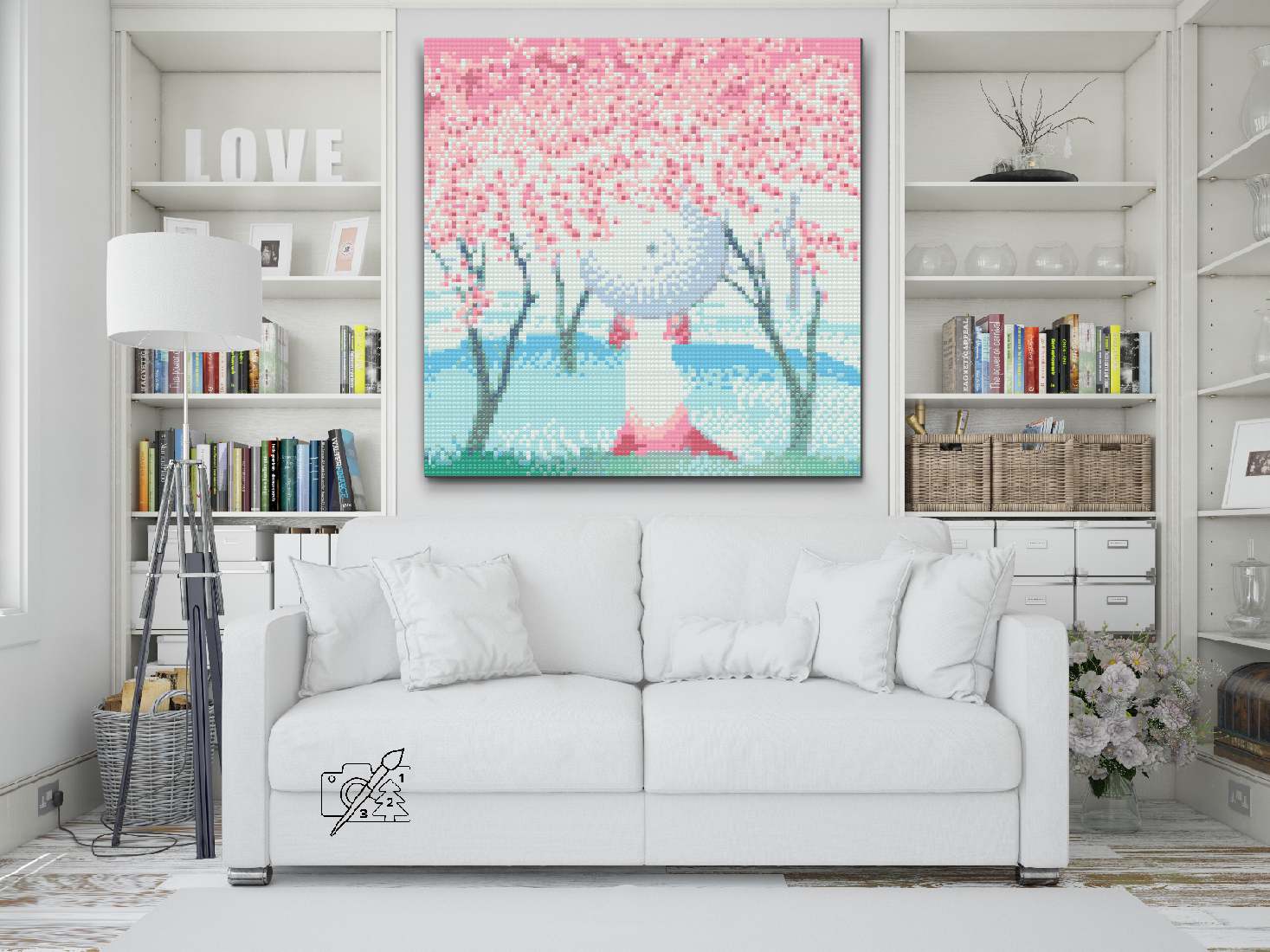 Diamond Paint - Kvinde står under kirsebærtræer